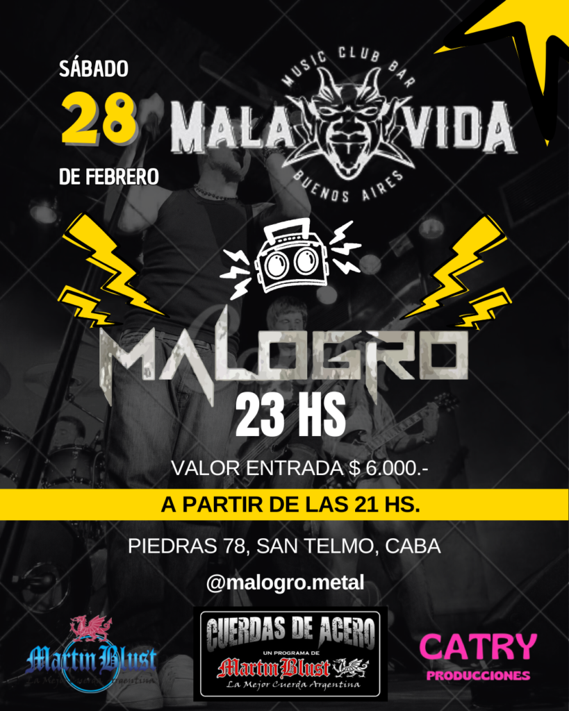 28 de Febrero Malogro cierra la noche. Valor Anticipadas $ 6.000.- por whast app o al correo pedí tu entrada!!!